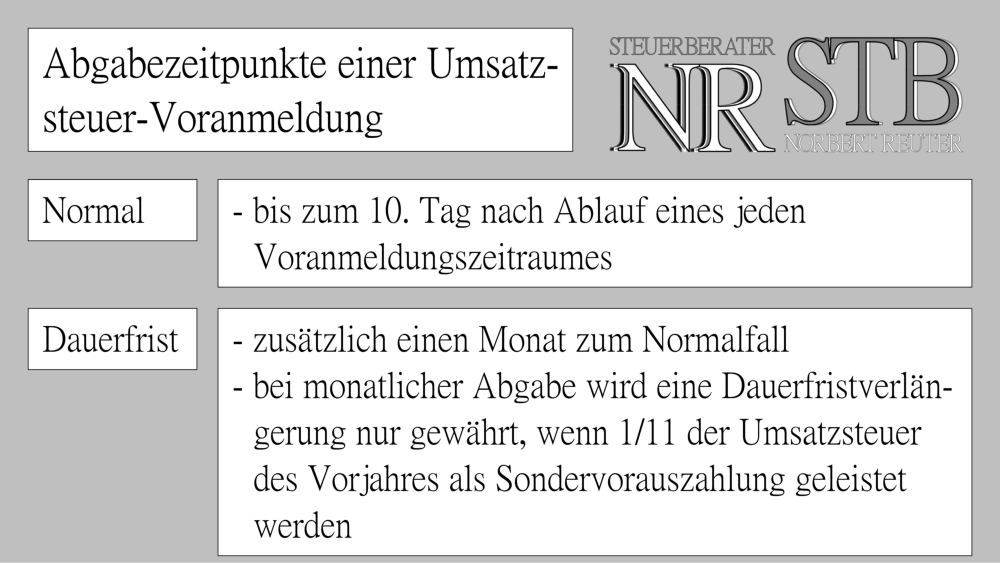 Abgabezeitpunkt Umsatzsteuer-Voranmeldung