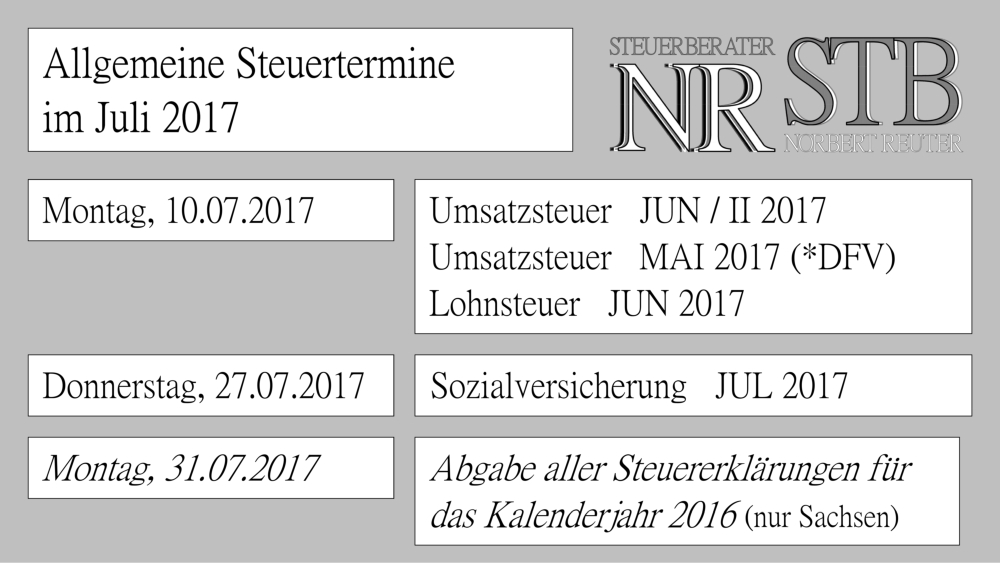 Steuertermine Juli 2017