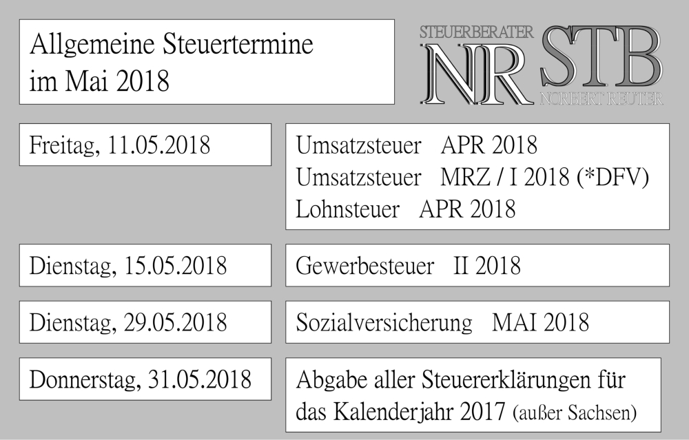Steuertermine Mai 2018